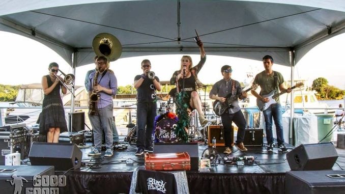 They kept at the Balkan and Romany music, as “Chaje Shukaje” testifies, a cover of rousing number by Macedonian musical icon Esma Redzepova. They also expanded into new sounds, exploring other styles with brass at their core. “Once we got a full horn section, we could really dive into other genres,” explains Ounallah. “It’s a hodge-podge of influences, but our emphasis is really on the songwriting and an all-out dance party at shows.” Black Masala’s originals hit both elements head on, telling stories of powerful women, rascally dudes, raucous nights, and life on the road that are tinged with a hint of the fantastical, as the video for the title track reveals.